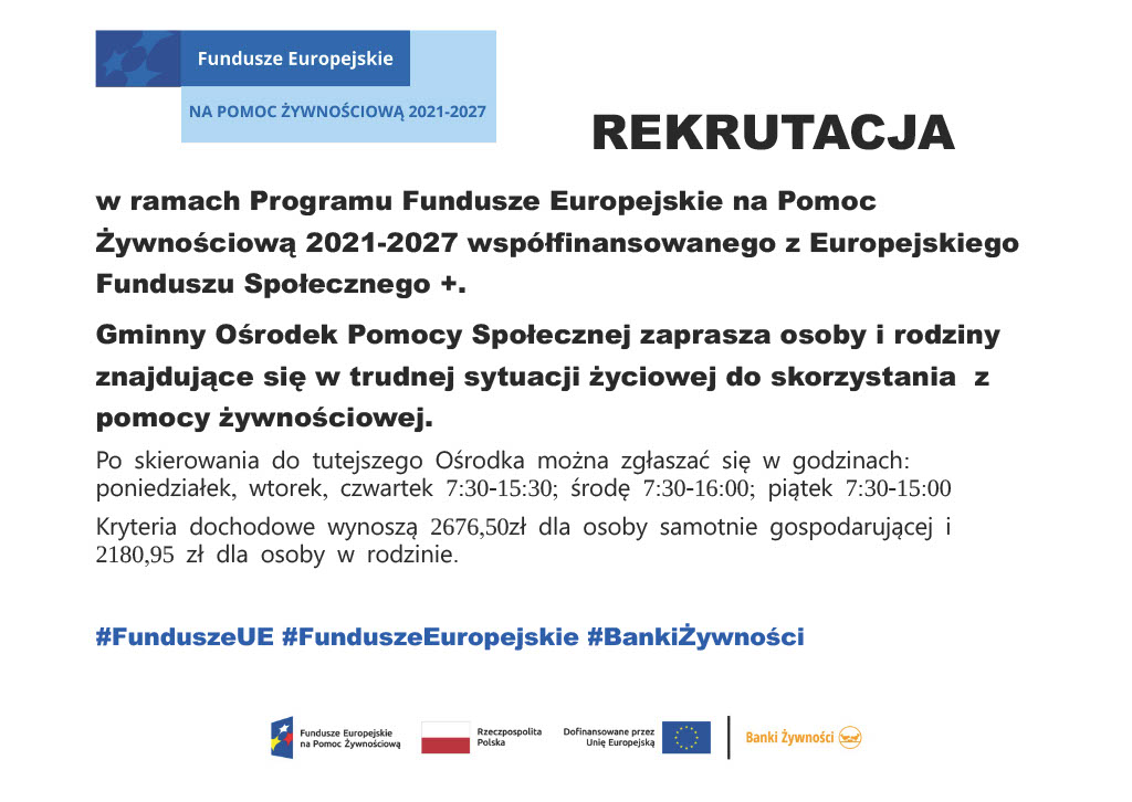 PROGRAM OPERACYJNY POMOC ŻYWNOŚCIOWA 2014-2020 JEST WSPÓŁFINANSOWANY Z EUROPEJSKIEGO FUNDUSZU POMOCY NAJBARDZIEJ POTRZEBUJĄCYM