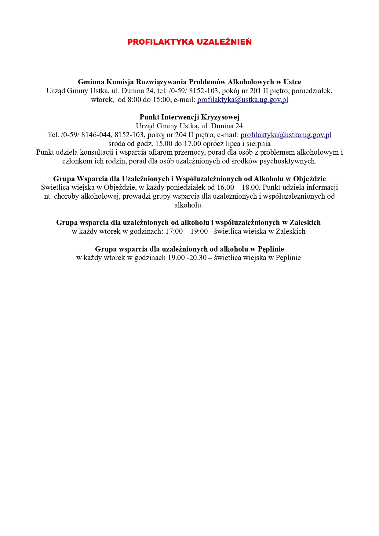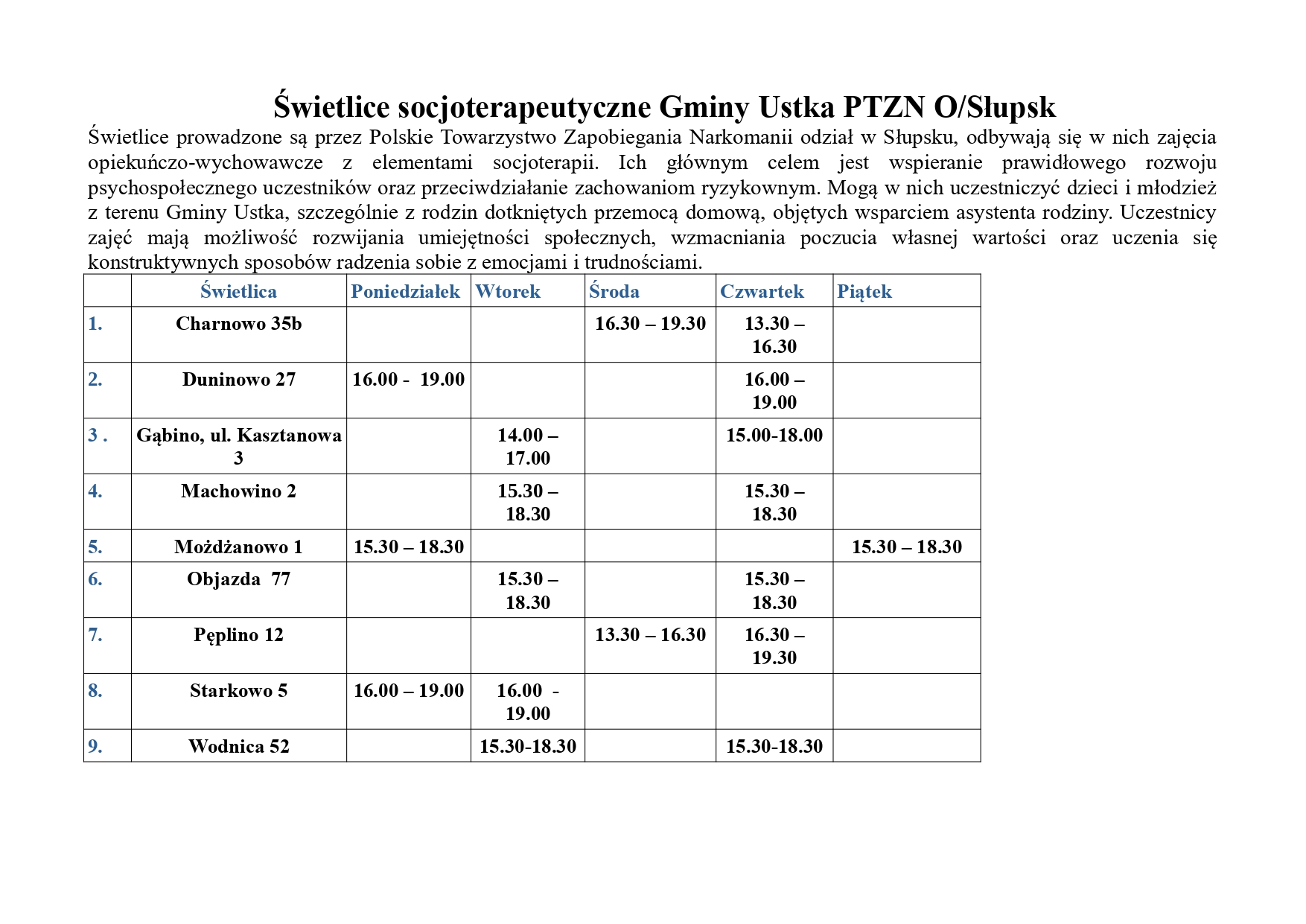 w Gminnym Ośrodku Pomocy Społecznej w Ustce ul. Dunina 24,